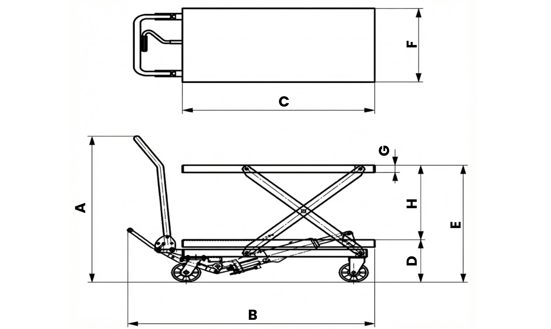 | cod | A | B | C | D | E | F | Ruote d. | Portata | Peso | Nr. cicli per elevazione massima |